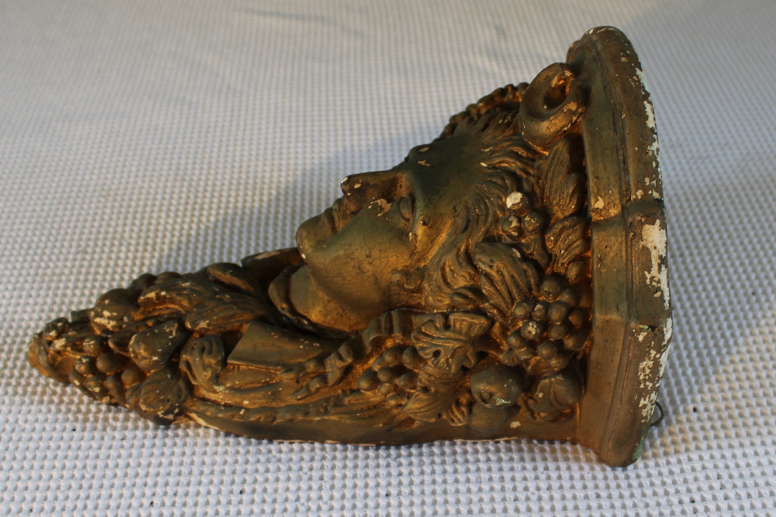 Condition: Really aged looking patination of gold and green to the surface, almost like Verdigris in places. Lots of small and larger chips exposing small areas of plaster but most appealing nevertheless. One might choose to do a subtle touch up here and there, but they are still very appealing as they are.
